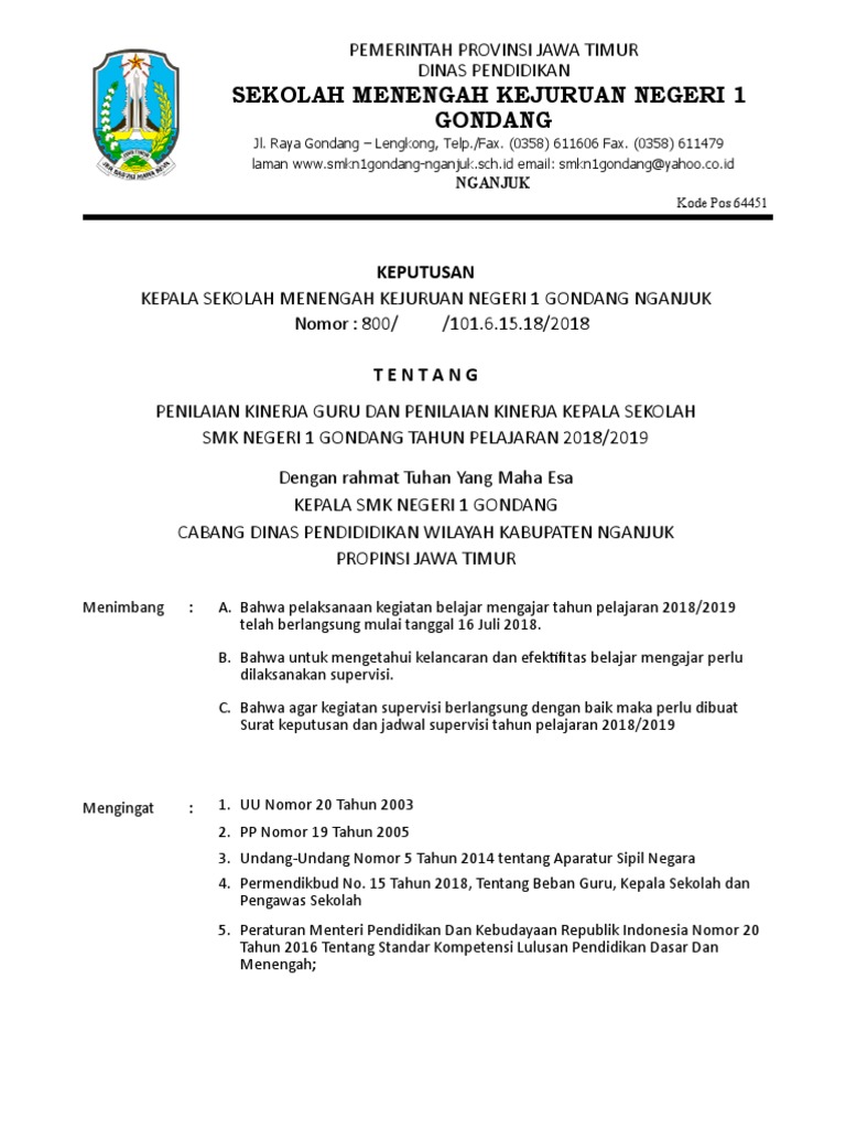 Supervisi akademik adalah serangkaian kegiatan membantu guru mengembangkan kemampuannya mengelola proses pembelajaran untuk mencapai tujuan pembelajaran (daresh, 1989, glickman, et al; Supervisi akademik tidak terlepas dari penilaian kinerja guru dalam mengelola pembelajaran. Supervisi akademik memiliki peran yang sangat penting dalam peningkatan kompetensi profesional guru.berdasarkan studi di lapangan pelaksanaan supervisi guru smk negeri 10 padang belum berjalan dengan optimal karena kurang mampunya supervisor yang ditunjuk untuk mesupervisi guru. Sk supervisi kelas tahun pelajaran 2016/2017 info contoh guru smp ilmu sosial format word komite sekolah paud sma doc. Contoh sk pembagian tugas gurudoc.
